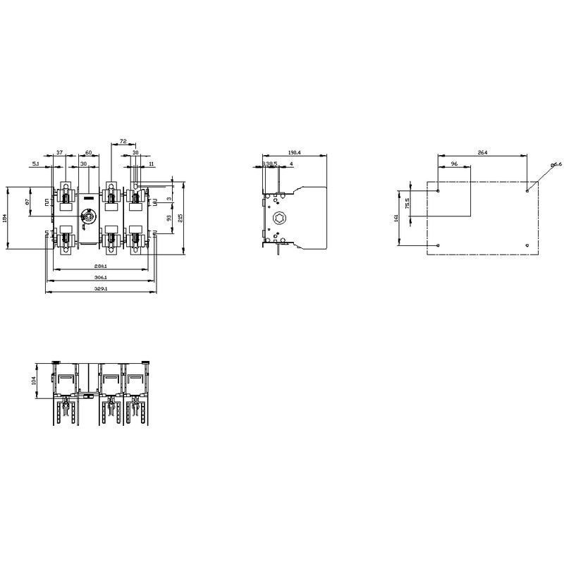 Kytkinvaroke 3X400 A 1/2 Pohja-asennus Kiskoliittimet kuparille