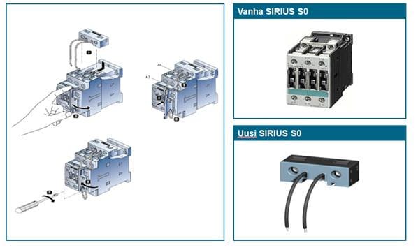 3RT2926-4RA11 liittimellä voidaan kontaktorin 3RT202.., 3RT203.. ja 3RT204... kelan liittimet siirtää samalle tasolle kuin ne olivat 3RT102... ja 3RT103.. -sarjan kontaktoreissa.