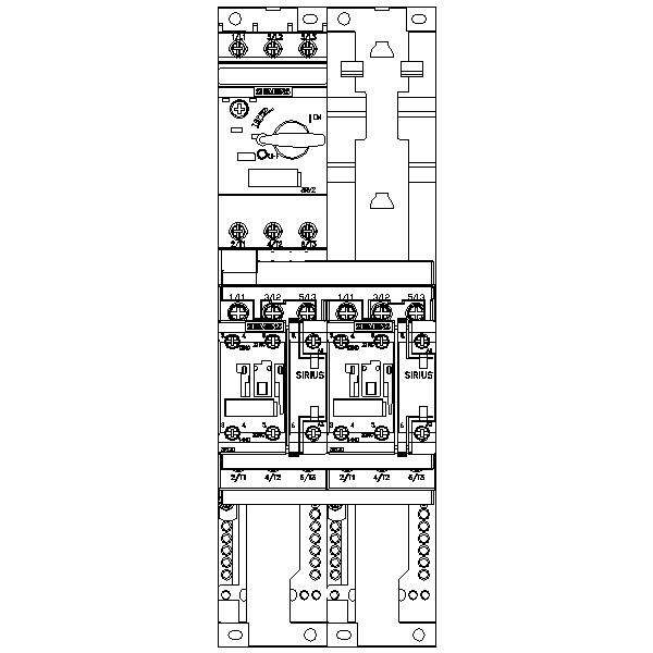 Kuormansyöttölaite sulakkeeton, suunnanvaihtokäyttö 400 V AC, koko S0 16...22 A 230 V AC ruuviliitin asennettavaksi vakiokiinnityskiskoon vakiokiinnityskiskoadapterilla (täyttää myös koordinointityypin 1) Koordinointityyppi 2, Iq = 150 kA 1 NO+1 NC (kontaktori)
