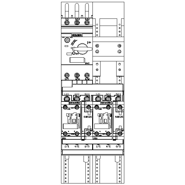 Kuormansyöttö sulakkeeton, suunnanvaihtokäyttö 400 V AC, koko S0 18...25 A 24 V DC ruuviliitin 60 mm virtakiskojärjestelmille (täyttää myös koordinointityypin 1) Koordinointityyppi 2, Iq = 150 kA 1 NO+1 NC (kontaktori)