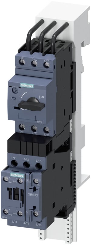 Kuormansyöttö sulakkeeton, Suorakäynnistys 400 V AC, koko S0 3,50...5,00 A 24 V DC ruuviliitin 60 mm virtakiskojärjestelmille (täyttää myös koordinointityypin 1) Koordinointityyppi 2, Iq = 150 kA 1 NO+1 NC (kontaktori)