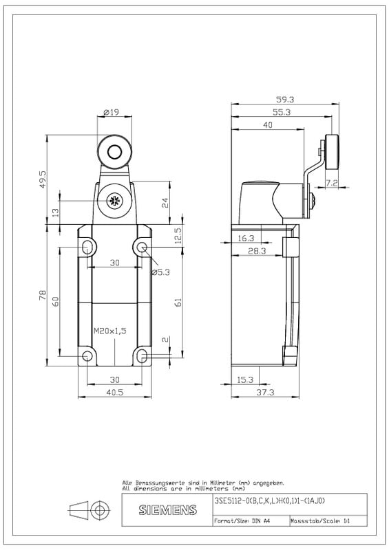 SIEMENS - Rajakytkin, kääntörullavipu, m - 3SE5112-0LH01