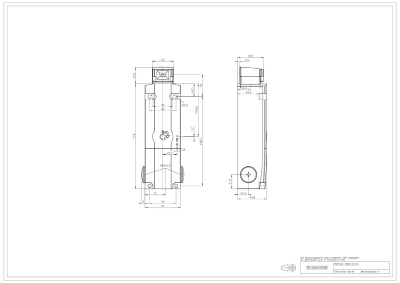 Turva-asennon kytkin ja rumpu Lukitusvoima 2600 N 5 lähestymissuuntaa Jousilukittu Lisävapautus edessä Magneettijännite 24 V DC Valvontatoimilaite 2 NC/1 NO Valvontamagneetti 2 NC/1 NO Toimitetaan ilman toimilaitetta. Toimilaite 3SE5000-0AV0. tilaa erikseen