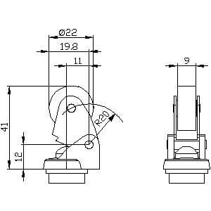 Rajakytkinohjainpää, rullavipu RST, muovirulla 22mm, metallirunko