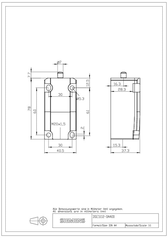 SIEMENS - Rajakytkinrunko, metallikotelo - 3SE5112-0LA00