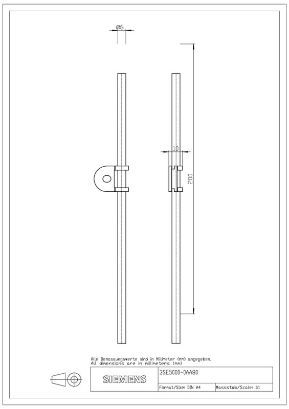 asentokytkimen kiertovipu 3SE51/52 Alumiinitanko 200 mm, muoto D Halkaisija 6 mm liittimellä EN 50041 mukaisesti