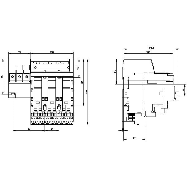 SIEMENS - Syöttöalusta 50/75m2 - 3RA6813-8AC vasen 3-paikkainen