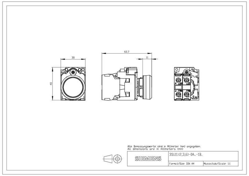 SIEMENS - Tasovalopainike - 3SU1102-0AB40-1BA0