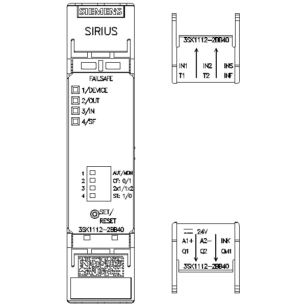 SIRIUS-turvarele Perusyksikkö Vakiosarjan elektroniset aktivointipiirit 2 aktivointipiiriä plus 1 merkinantopiiri Us = 24 V DC Jousiliitin (push-in)