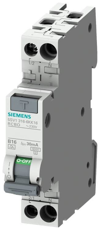 SIEMENS - Vikavirtajohdonsuojakatkaisija - 5SV1316-6KK10, 2B10 30mA A 6kA