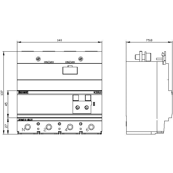 Vikavirtasuoja RCD820 Tyyppi A Pohja-asennus. Vikavirta 0,03...30A50/60Hz Aika: 0-10 s. 4-napainen in=160A Ue=100-690V lisävaruste:3VA20/3VA21