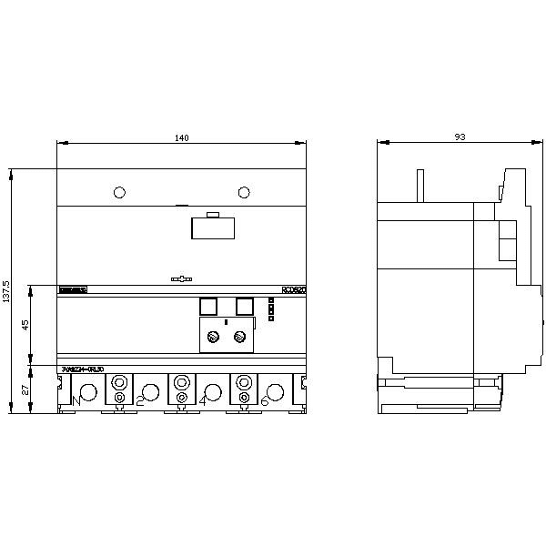 Vikavirtasuoja RCD820 Tyyppi A Pohja-asennus. Vikavirta 0,03...30A50/60Hz Aika: 0-10 s. 4-napainen in=250A Ue=100-690V lisävaruste: 3VA22