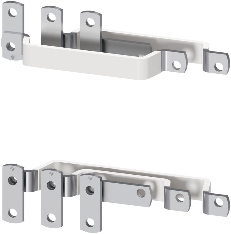 Kytkentäkiskosarja suunnanvaihtokontaktorikokoonpanoille 3RT1.6 Syöttö- ja lähtöpuoli, vaiheenvaihtolähtöpuoli, kontaktori virtakiskoliitännällä (ilman koteloliitintä)