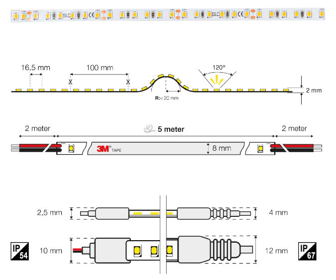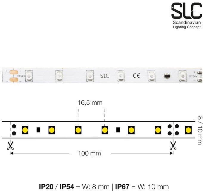 SLC LED-nauha IP20 3000K, 5m, 4,8W/m 410lm/m 24VDC • Matalatehoiset LED-nauhat; 4,8W/m