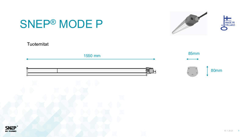 • Ohjaus: On/Off, saatavilla DALI ja teollisuusliitäntälaitteet (-40…+55°C, 4kV ylijännitesuoja)