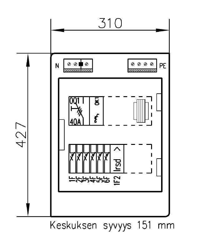 UPS ohituskeskus 230VAC 6kVA IP44 vikavirtasuojakytkin+6kpl 10A automaatti keskuksessa, automaattinen verkolle siirtovikatilanteessa, lisäautomaattien lisäys mahdollista itse