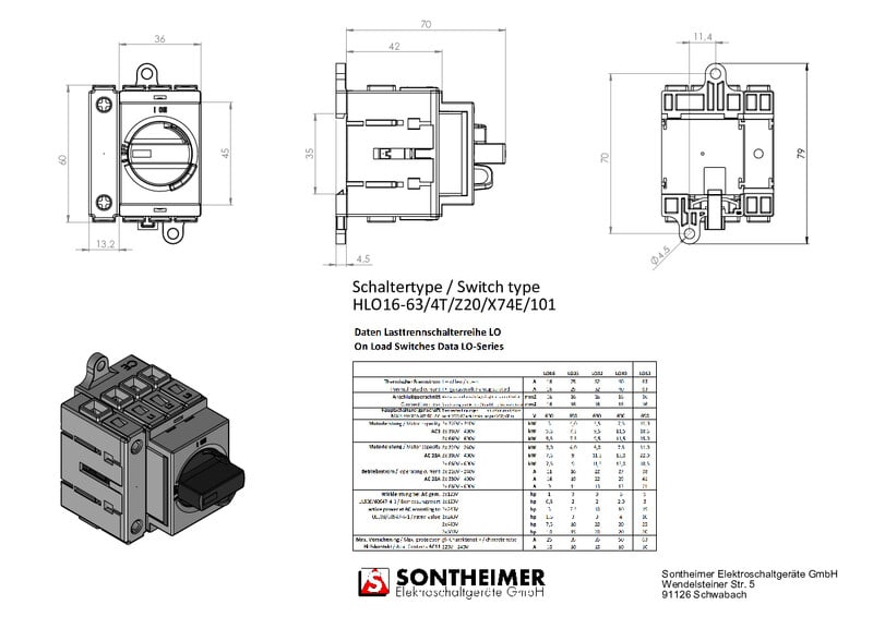 SONTHEIMER - Pääkytkin - HLO40/4T/Z20/Z74E/F908