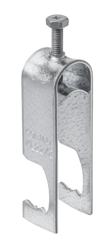 Kaarikiinnike, levymalli, erilaisiin profiileihin jaohutlevyrakenteisiin. Sinkitty, kahdelle kaapelille.