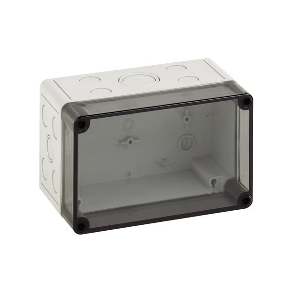 Tyhjä kotelo IP66, kotelo: polystyreeni, harmaa, vastaava kuin RAL 7035, kansi: polykarbonaattia, läpinäkyvä