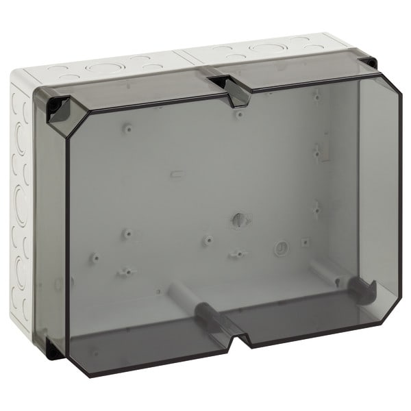 Tyhjä kotelo IP66, kotelo: polystyreeni, harmaa, vastaava kuin RAL 7035, kansi: polykarbonaattia, läpinäkyvä