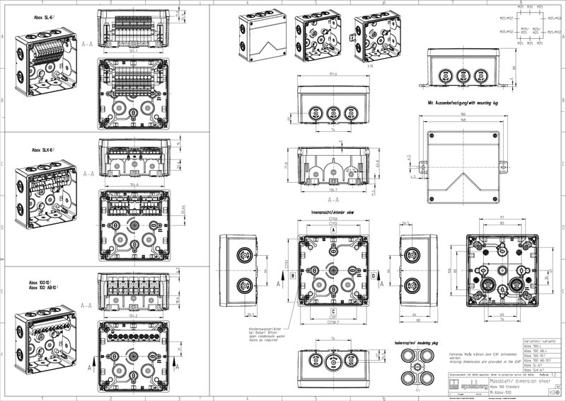 kytkentäkotelona, Suojaluokiteltu IP66, Nimellinen poikkileikkaus 10 mm², Sertifioitu VDE (DIN EN 60670-1/-22 (VDE 0606-1/-22)), DLG (ammoniakinkestävyys), Itsetiivistyvät, joustavat läpivientien kalvotiivisteet, M20/M25/M32, Tiiveysalue 8 - 28 mm, (2 Takaosa, 10 Puoli), Sisäiset kiinnityspisteet, asennuksiin sisätiloissa ja suojattuihin ulkoasennuksiin, valkoinen, Ui=1000 V AC, ilman liittimiä Mitat: 152 x 152 x 80 mm
