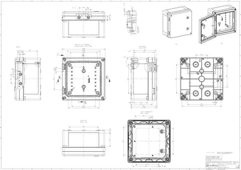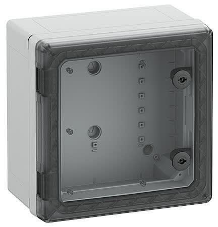 Kytkentäkaappi - teollisuuslaatu, sopii asennettavaksi vaativiin ympäristöihin ja suojaamattomiin ulkotiloihin, kotelo ja runko: lasikuituvahvistettu polykarbonaatti, harmaa, vastaava kuin RAL 7035, ovi: Polykarbonaatti. Kiertosalpalukitus 3mm kaksoisosalla (vaihdettavissa) DIN 43668:n mukaisesti läpinäkyvällä ovella