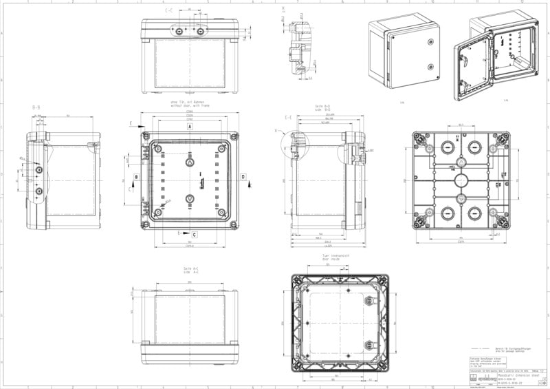 Kytkentäkaappi - teollisuuslaatu, sopii asennettavaksi vaativiin ympäristöihin ja suojaamattomiin ulkotiloihin, kotelo ja runko: lasikuituvahvistettu polykarbonaatti, musta, vastaava kuin RAL 9005, ovi: Polykarbonaatti. Kiertosalpalukitus 3mm kaksoisosalla (vaihdettavissa) DIN 43668:n mukaisesti sis. mustan oven.
