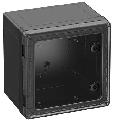 Kytkentäkaappi - teollisuuslaatu, sopii asennettavaksi vaativiin ympäristöihin ja suojaamattomiin ulkotiloihin, kotelo ja runko: lasikuituvahvistettu polykarbonaatti, musta, vastaava kuin RAL 9005, ovi: Polykarbonaatti. Kiertosalpalukitus 3mm kaksoisosalla (vaihdettavissa) DIN 43668:n mukaisesti läpinäkyvällä ovella