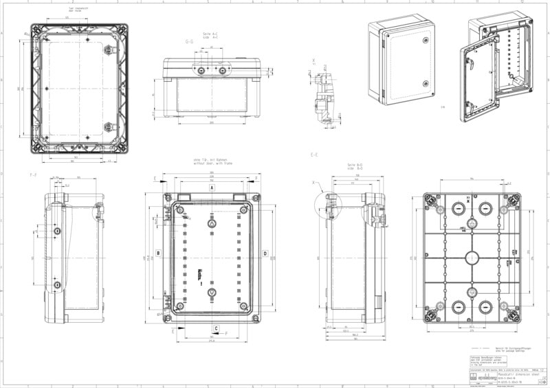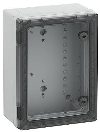 Kytkentäkaappi - teollisuuslaatu, sopii asennettavaksi vaativiin ympäristöihin ja suojaamattomiin ulkotiloihin, kotelo ja runko: lasikuituvahvistettu polykarbonaatti, harmaa, vastaava kuin RAL 7035, ovi: Polykarbonaatti. Kiertosalpalukitus 3mm kaksoisosalla (vaihdettavissa) DIN 43668:n mukaisesti läpinäkyvällä ovella