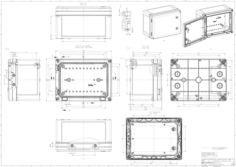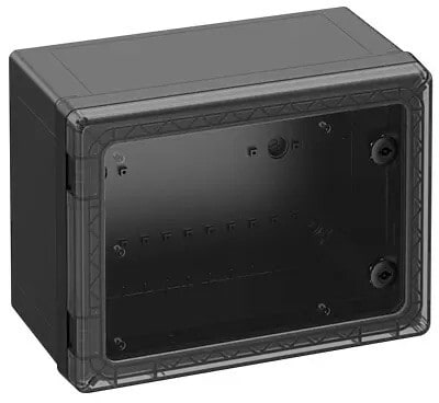 Kytkentäkaappi - teollisuuslaatu, sopii asennettavaksi vaativiin ympäristöihin ja suojaamattomiin ulkotiloihin, kotelo ja runko: lasikuituvahvistettu polykarbonaatti, musta, vastaava kuin RAL 9005, ovi: Polykarbonaatti. Kiertosalpalukitus 3mm kaksoisosalla (vaihdettavissa) DIN 43668:n mukaisesti läpinäkyvällä ovella