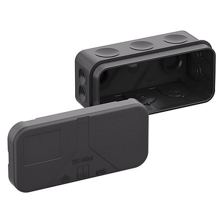 akorasia DIN EN 60670 (VDE 0606) mukaisesti, 10 läpivientiä, yksi läpivienti pohjassa, pehmeillä läpivienneillä,tiivistysalue 2-10mm (päädyissä ja pohjassa),2-14mm sivuilla,sisäkiinnityksellä. musta, ilman kiristintä, VDE:n hyväksymille yksittäisliittimille
