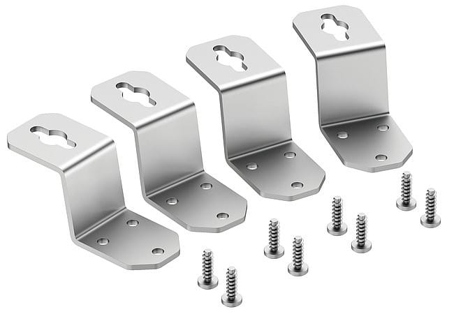 Ulkokiinnityskielekesarja, ruostumatonta terästä, V4A, asennus mahdollista kulmaan 0° tai 90°, sarjassa 4 kpl.