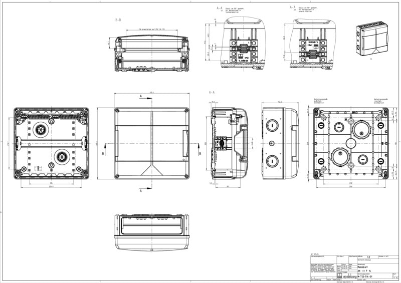 Moduulikotelo - teollisuusmalli -, laipan malli, avoimilla päädyillä, joissa voidaan käyttää erilaisia laippoja, useampien AK-F-moduulikoteloiden liittämiseksi yhteen yhdistyslaipan avulla, 1-rivinen, 14 moduulia, integroiduilla tuuletusventtiileillä kondenssiveden muodostumisen vähentämiseksi, DIN-peitelevy ja merkintäliuska, ylimääräisillä kaksoiskalvotiivisteillä ja muilla tarvikkeilla, laipat ja yhdistyslaipat on hankittava erikseen.