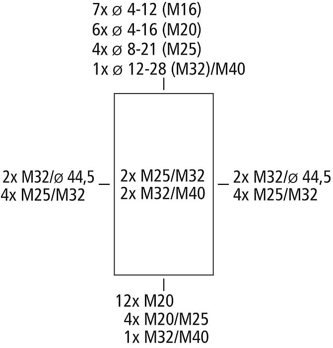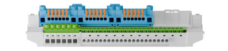 AK 36, Moduulikotelo,36 moduulipaikkaa, PE/N- kisko jousiliittimin Moduulikotelo, Suojaluokiteltu IP65, 3 Rivit, 36 saatavilla olevat moduulit, Nimelliskäyttöjännite: 400V AC, Nimelliseristysjännite: 1000V AC, 1500V DC, Yläosassa itsetiivistyvät pehmeät läpiviennit työkaluttomaan kaapelien läpivientiin, alaosassa metriset aihiot kaapelien läpivientejä varten, joissa käytetään holkkitiivisteitä ja/tai kaksoiskalvotiivisteitä, tavallisiin sisäasennuksiin PE/N-riviliitin, jossa PE-moduuli 6 kpl 2,5–16 mm²:n ruuviliittimiä ja 21 kpl 0,75–4 mm²:n jousiliittimiä. 3 kpl (silloilla yhdistettyjä) N-moduuleja, joissa kaikissa 2 kpl 2,5–16 mm²:n ruuviliittimiä ja 6 kpl 0,75–4 mm²:n jousiliittimiä (joissa kytkentävipu johtimen vapauttamiseen ilman työkaluja) Sisältää tarvikkeet: Sulkutulpat, peite- ja merkintäliuskat