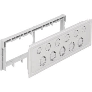 Peitelaippa AK-F-kotelon laippa-aihion sulkemiseen. Sisältää laipan kiinnittimet.