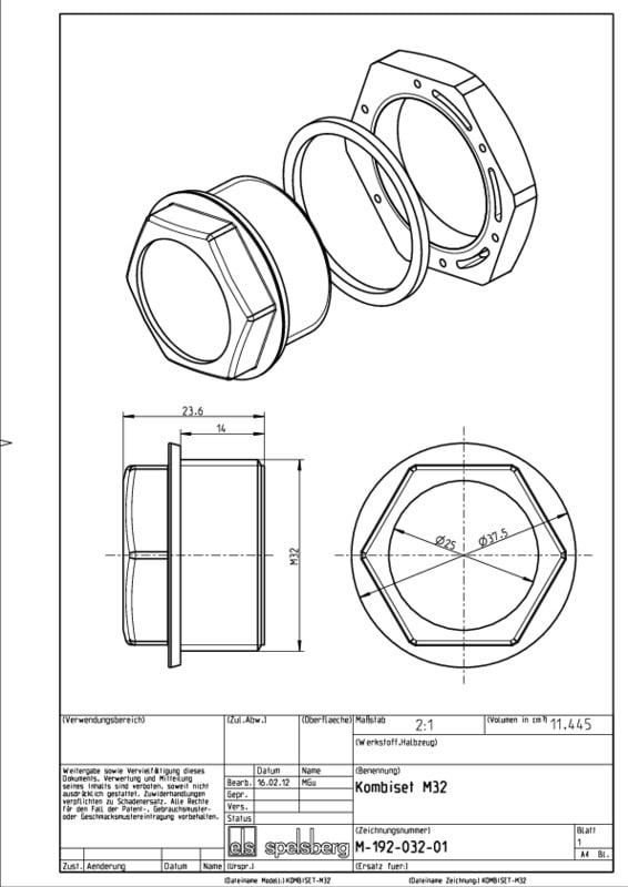 KS M32 Yhdyskappale IP 66, M32 läpiviennit koteloissa AK/Ake Liitospakkaus, koteloiden liittämiseen metrisillä sisäänvienneillä, sisältää vastamutterin ja tiiviisteen.