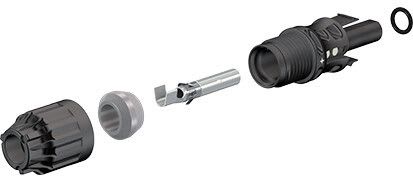 Stäubli MC4-Evo2 aurinkokaapeliliitin, naaras, 4-6mm2, kaapelinhalkaisija 4,7 - 6,4mm, 1500VDC, 53A max