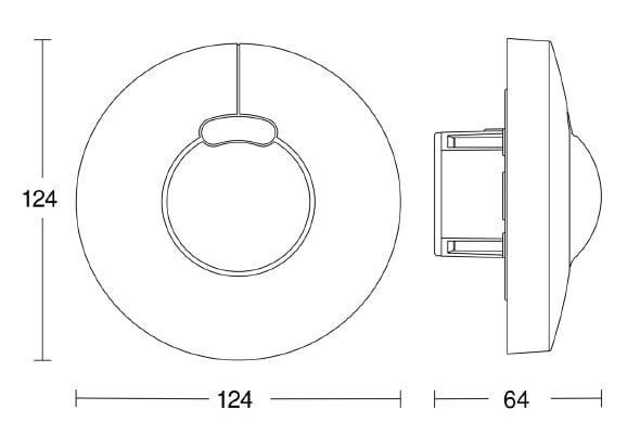 360° suurtaajuusliiketunnistin sisätiloihin. Uppoasennus kattoon tai seinään max. 4 m korkeuteen. Tunnistusalueen Ø enintään 8 m. Toimintakulma 360 astetta, avauskulma 180 astetta.
