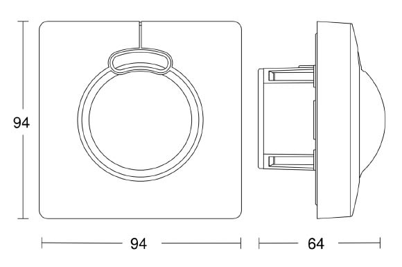 360° suurtaajuusliiketunnistin sisätiloihin. Uppoasennus kattoon tai seinään max. 4 m korkeuteen. Tunnistusalueen Ø enintään 8 m. Toimintakulma 360 astetta, avauskulma 180 astetta.