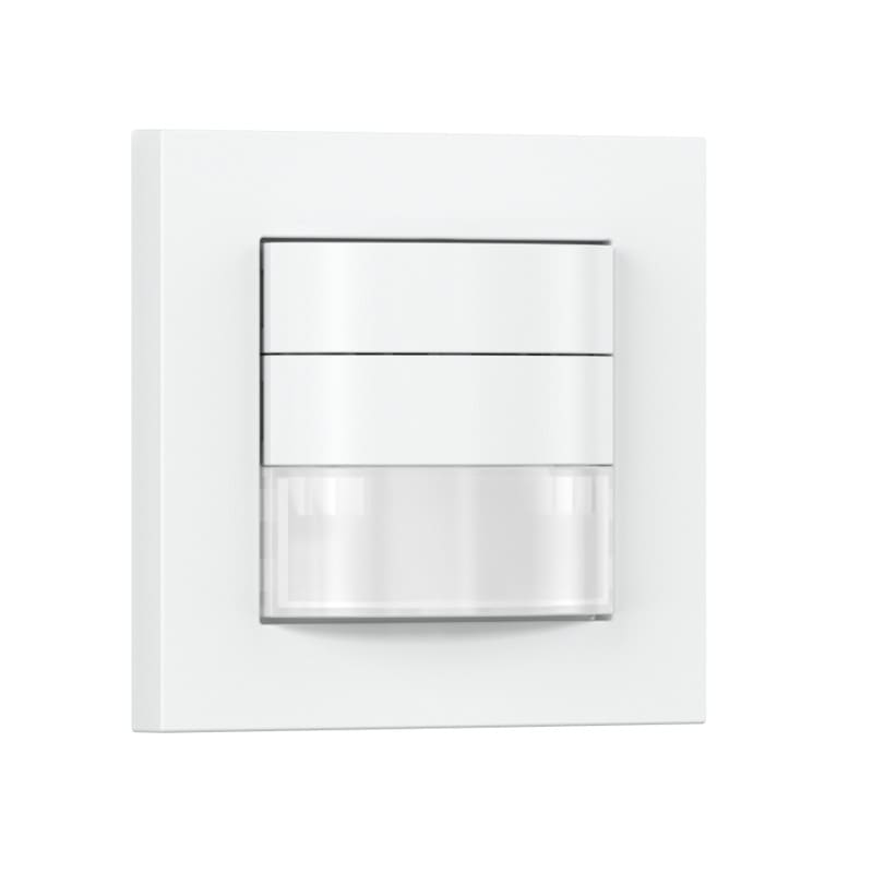 Tunnistusetäisyys enintään 8 m. KNX-malli ilmoittaa lämpötilan ja ilmankosteuden mittausarvoja. Sopiva adapteri kaikkiin tavallisiin 55 mm:n kehyksiin. Saatavana COM1 ja KNX.