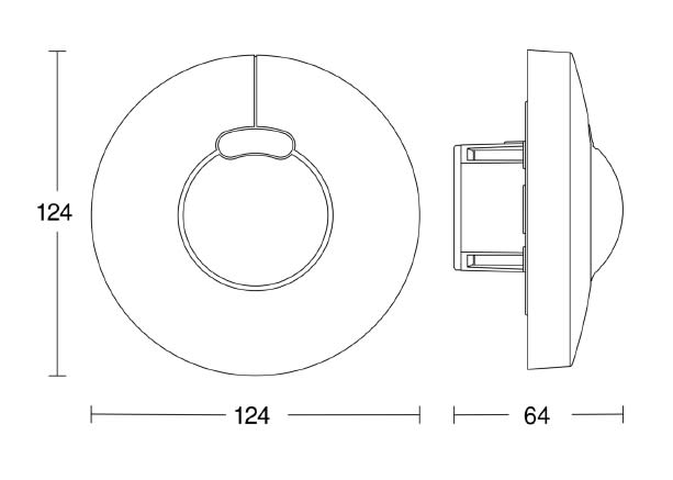 360° suurtaajuusliiketunnistin sisätiloihin. Uppoasennus kattoon, seinään tai kulmaan maks. 4 m korkeuteen. Tunnistusalueen Ø enintään 8 m. Toimintakulma 360 astetta, avauskulma 180 astetta. IP20. Mitat 64 x 124 x 124 mm. Saatavana COM1, PF, DALI2 IPD ja KNX. Pinta- ja uppoasennus, pyöreitä ja kulmikkaita malleja.