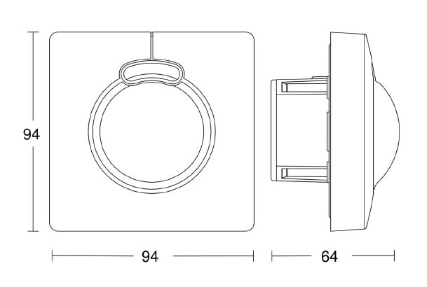 360° suurtaajuusliiketunnistin sisätiloihin. Uppoasennus kattoon, seinään tai kulmaan (kulmakiinnike 4212162) maks. 4 m korkeuteen. Tunnistusalueen Ø enintään 8 m. Toimintakulma 360 astetta, avauskulma 180 astetta. Maks. 2000 W, IP20. Mitat 64 x 94 x 94 mm. Saatavana COM1, PF, DALI2 IPD ja KNX. Pinta- ja uppoasennus, pyöreitä ja kulmikkaita malleja.