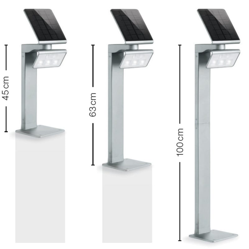 Aurinkokennovalaisimiemme jalustallinen malli on sekä tehokas että kaunis. Voit valita korkeudeltaan parhaiten sopivan jalustan ja valaista kirkkaalla LED-valolla jopa 20 neliömetrin kokoisen alueen. Täysin ilman energiakustannuksia. LED-valolähteen polttoikä on 50 000 tuntia.