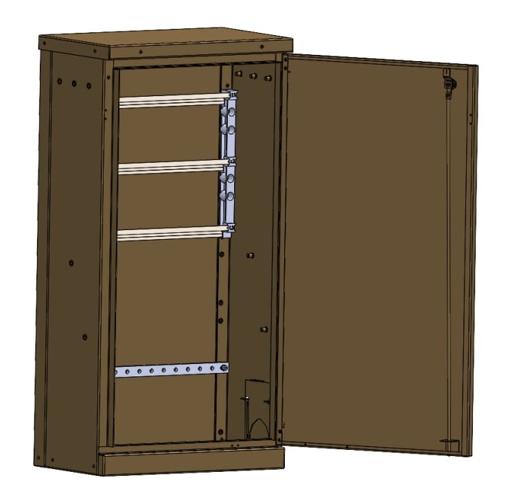 Jakokaappi STJK-K 0 RAL7008. Kaappiosan korkeus 1200mm ja jalustan1000mm. Jalusta tilattava erikseen (V007116).