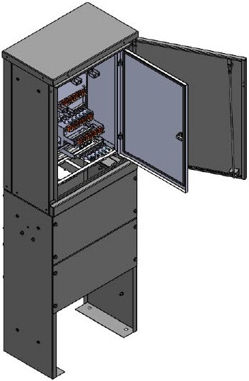 Kaapeliverkon jatkoskaappi teräsjalustalla, RAL 7037 Stera Technologies kaapelijakokaappi perinteisen kaapeliverkon haaroitukselle.