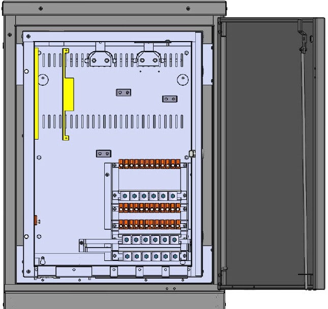 - EJK0850 K0/850 jauhemaalattu kuumasinkitystä teräksestä valmistettu ulkokaappi varustettuna kolmiokaralukolla RAL 7037