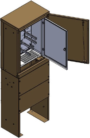 Mikrokanavaverkon jatkoskaappi teräsjalustalla, RAL 7008 Stera Technologies kaapelijakokaappi mikrokanavaverkon haaroitukselle.