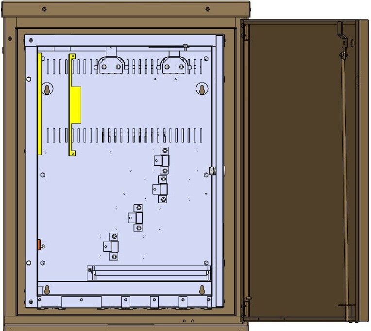 - EJK0850 K0/850 jauhemaalattu kuumasinkitystä teräksestä valmistettu ulkokaappi varustettuna kolmiokaralukolla RAL 7008