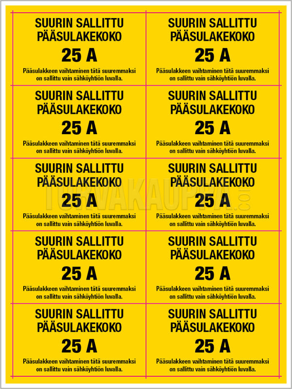 Sulaketarra-arkki 25A 55x30mm (arkissa 10 tarraa) keltainen