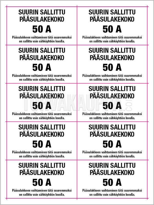 Sulaketarra-arkki 50A 55x30mm (arkissa 10 tarraa) valkoinen